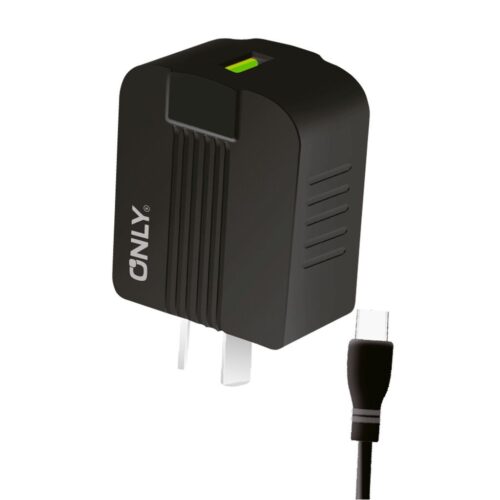 CARGADOR 220V MODO-006 – 1USB + TIPO C – ONLY PREMIUM- NEGRO