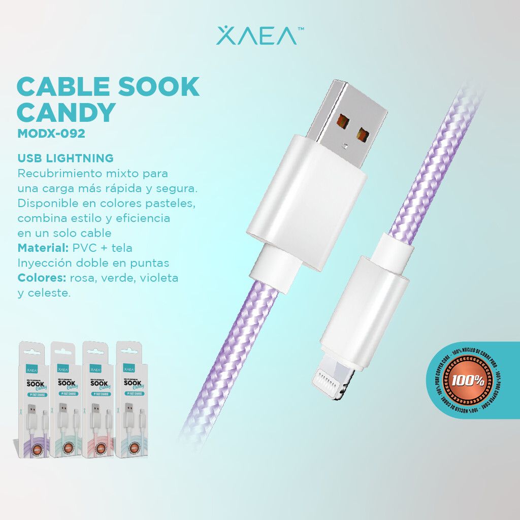 CABLE USB LIGHTNING MODX-092 – SOOK CANDY – XAEA – VIOLETA