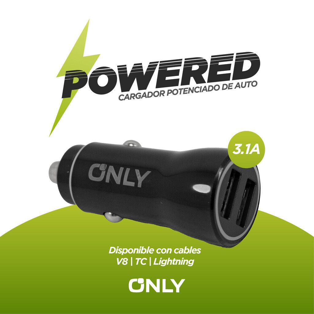 CARGADOR 12V POTENCIADO MOD 36 – ONLY – POWERED – LIGHTNING – NEGRO