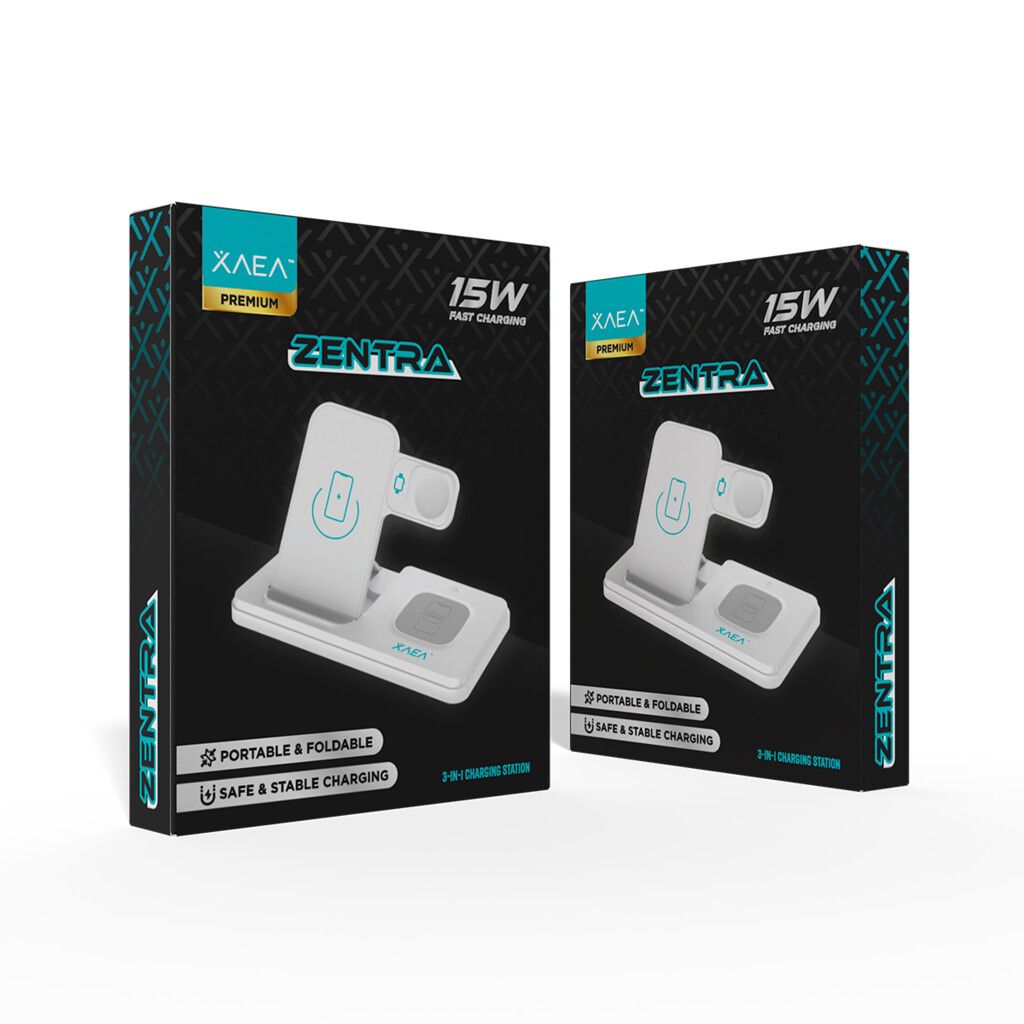 La ZENTRA es la solución ideal para quienes buscan orden y funcionalidad en un solo dispositivo. Con su diseño 3 en 1, permite cargar al mismo tiempo tu smartphone, auriculares y smartwatch, todo sin cables y con carga rápida inalámbrica de hasta 15W para el teléfono.