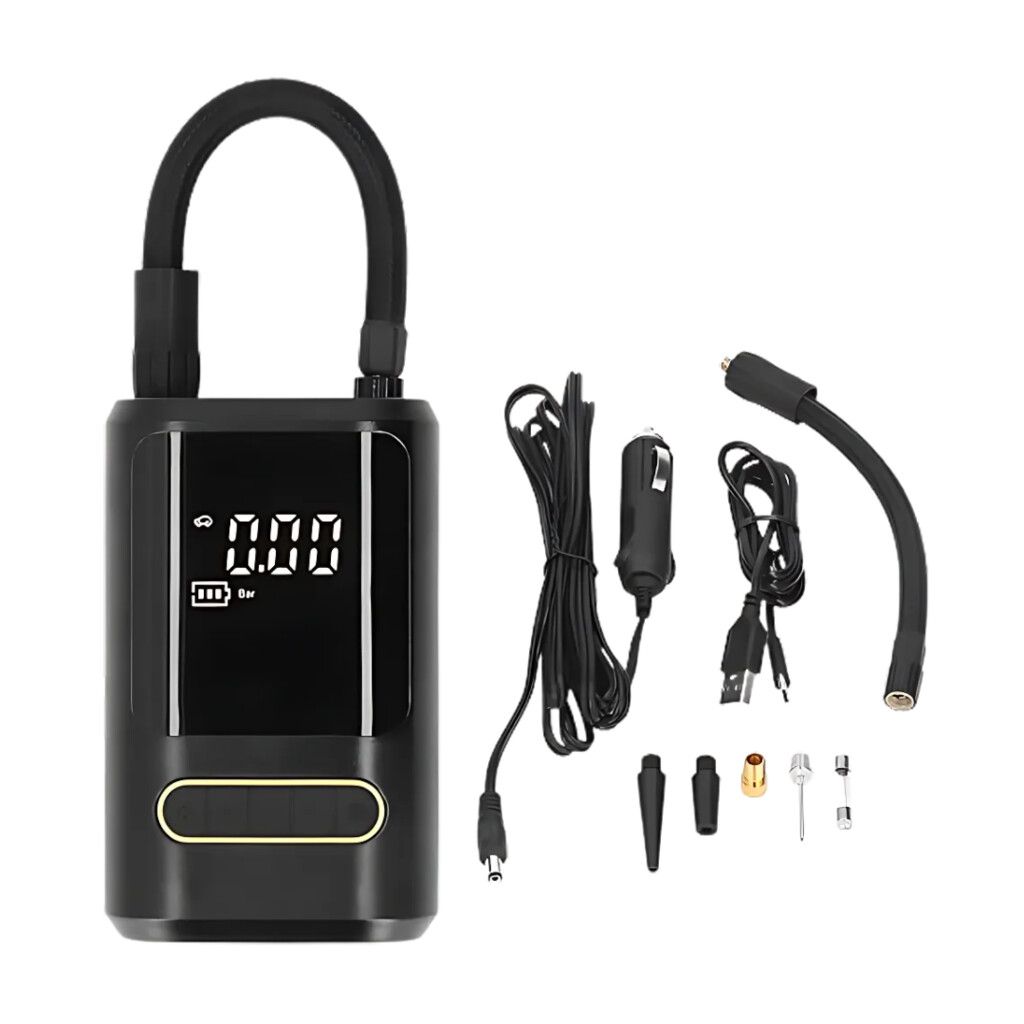 Este inflador combina inflación rápida, iluminación LED, medición de presión y función de banco de carga en un solo dispositivo. Permite preestablecer la presión de los neumáticos y cuenta con flash y señal SOS para emergencias.
